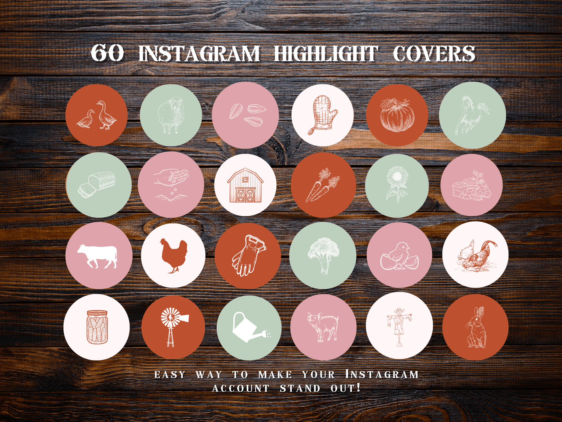 🌾 This pack includes 60 Farm, floral, homesteading, gardening, western-style Instagram Highlight Icons + 6 Instagram Story backgrounds.