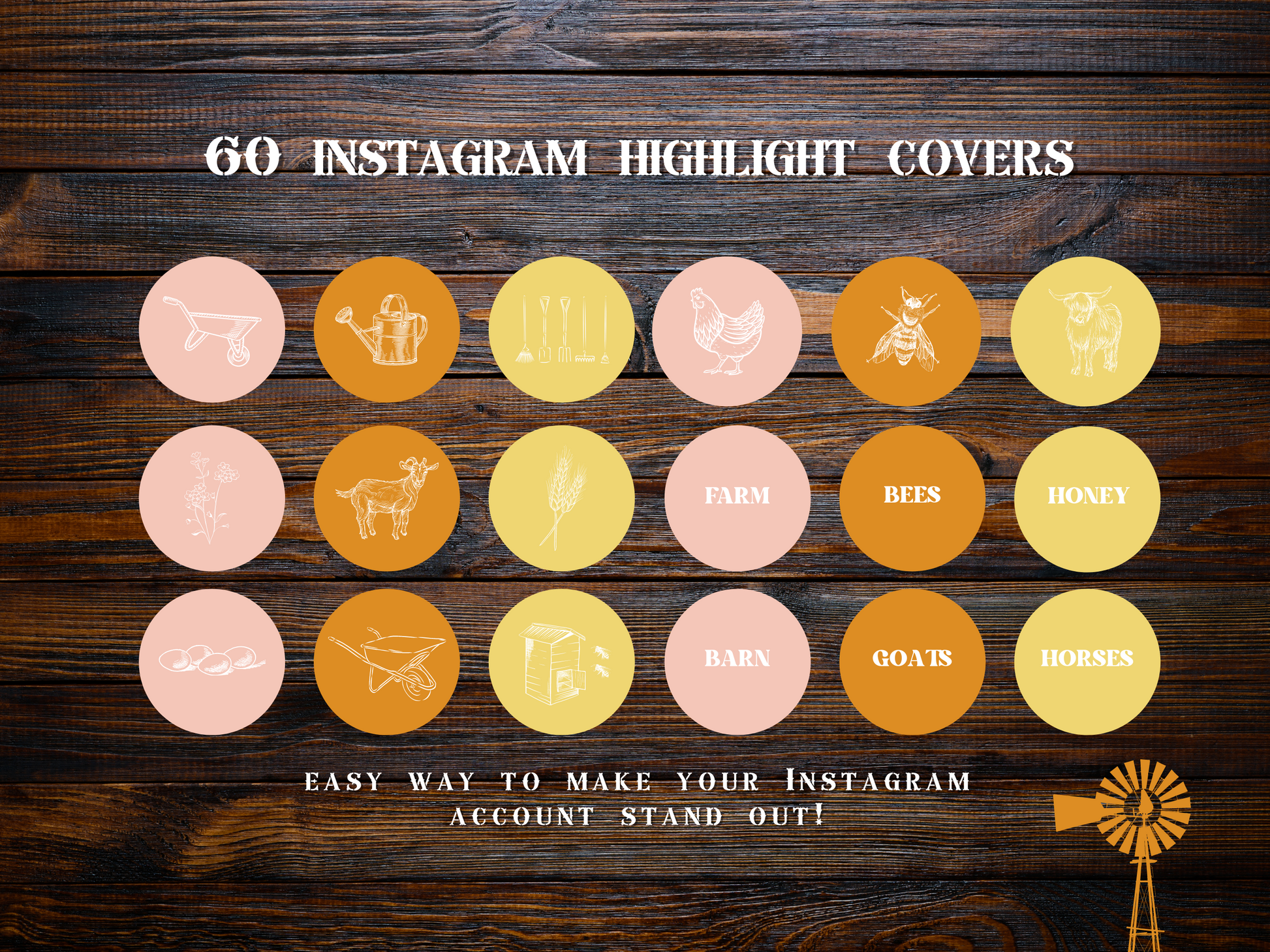 🌾 This pack includes 60 Farm, floral, homesteading, gardening, western-style Instagram Highlight Icons + 6 Instagram Story backgrounds.